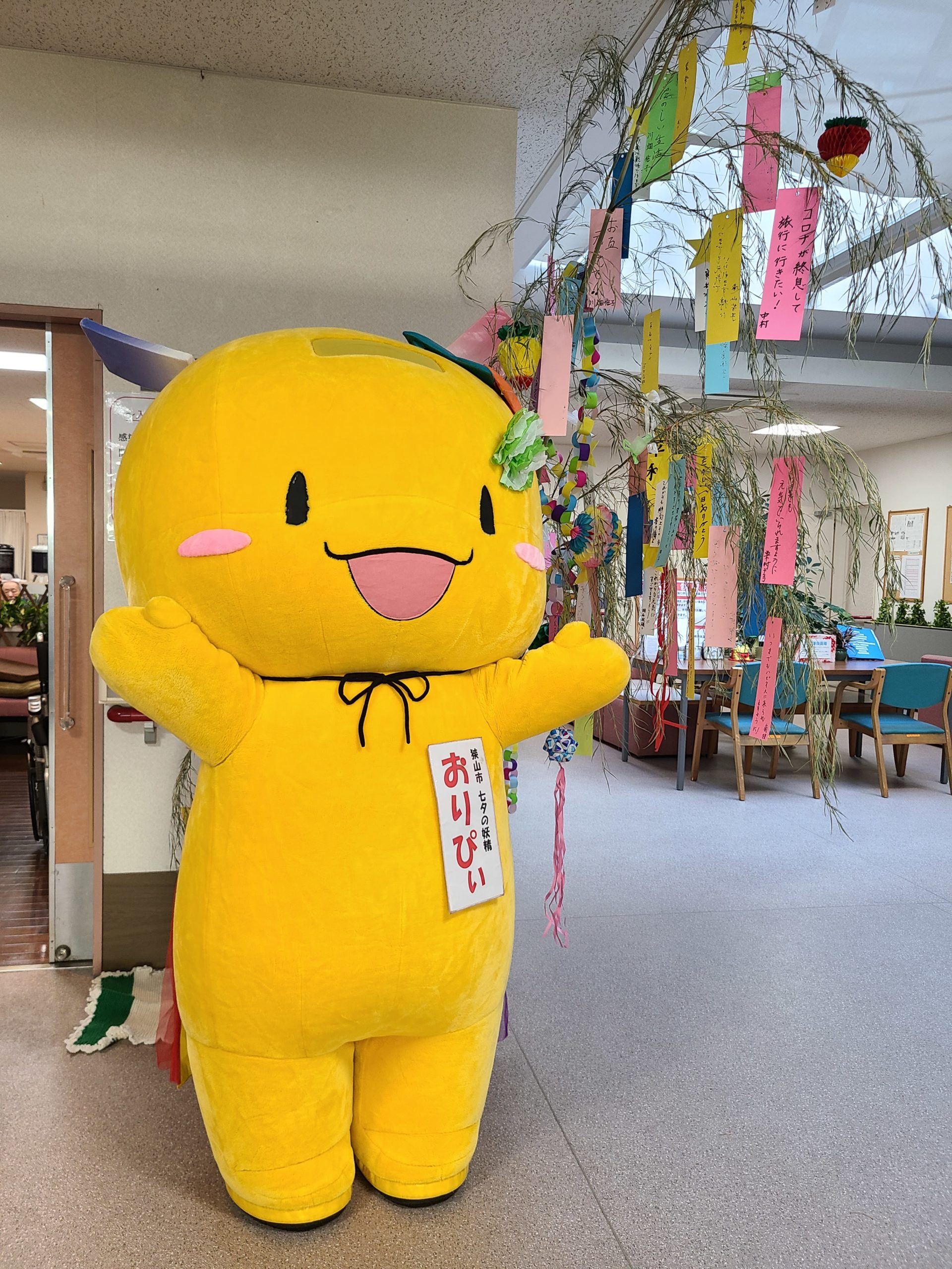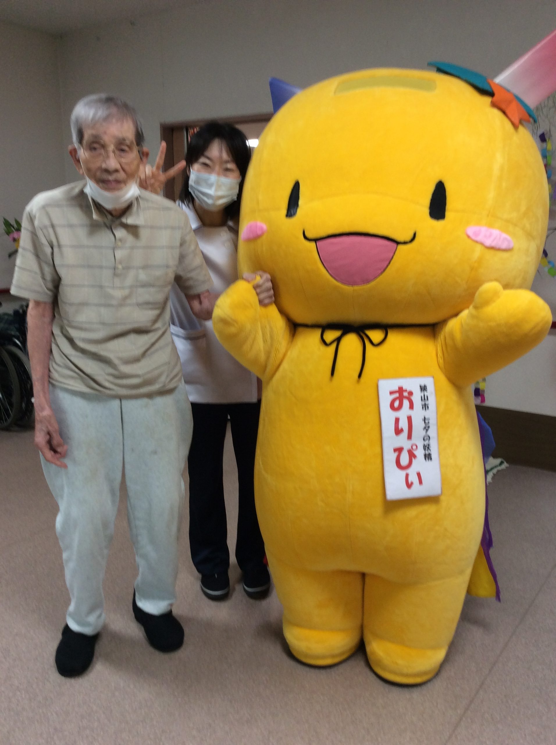 2022年7月9日2022年7月9日 by ハピネス狭山No Comments 7月7日 七夕の日 ハピネス狭山に狭山市のマスコット 七夕の妖精 おりぴぃ が遊びに来てくれました。 ハピネスの七夕飾りを見て大喜び ご利用者様も記念撮影を行い 大喜び 皆様の願いが叶いますように…。 共有:クリックして Twitter で共有 (新しいウィンドウで開きます)Facebook で共有するにはクリックしてください (新しいウィンドウで開きます)いいね:いいね 読み込み中… 関連